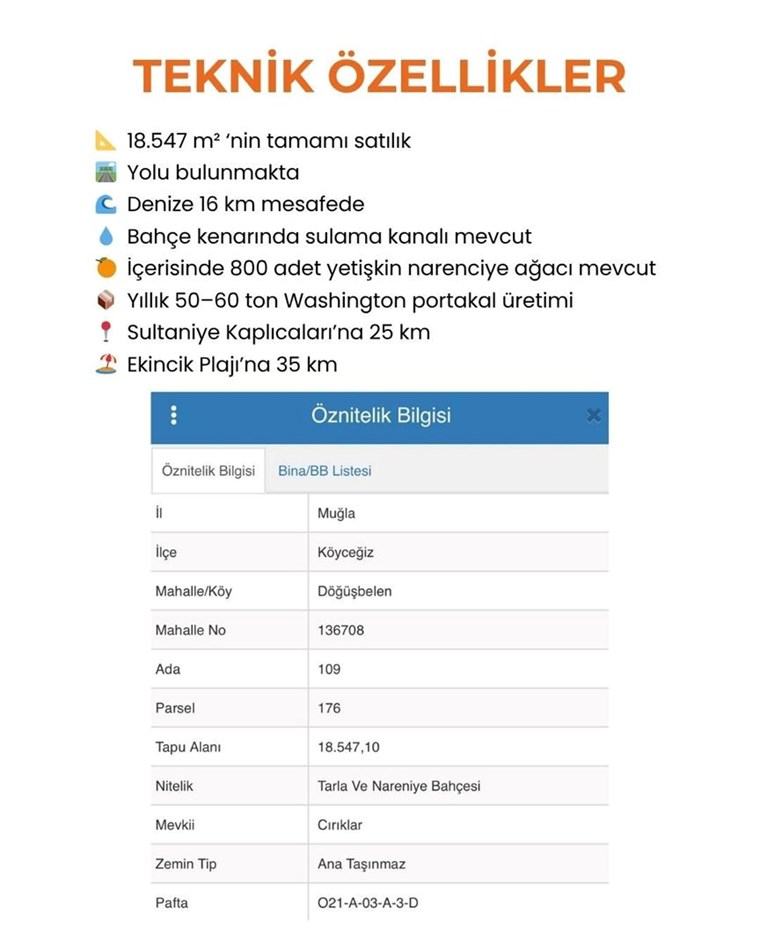 MUĞLA KÖYCEĞİZ DÖĞÜŞBELEN MH 18547M2 NARENCİYE BAHÇESİ Muğla, Köyceğiz, Döğüşbelen